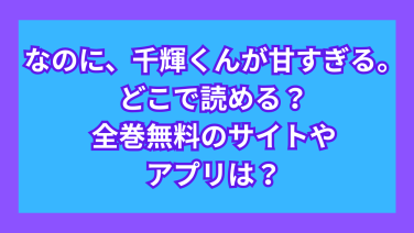 『なのに、千輝くんが甘すぎる。』どこで読める?全巻無料のサイトやアプリは?